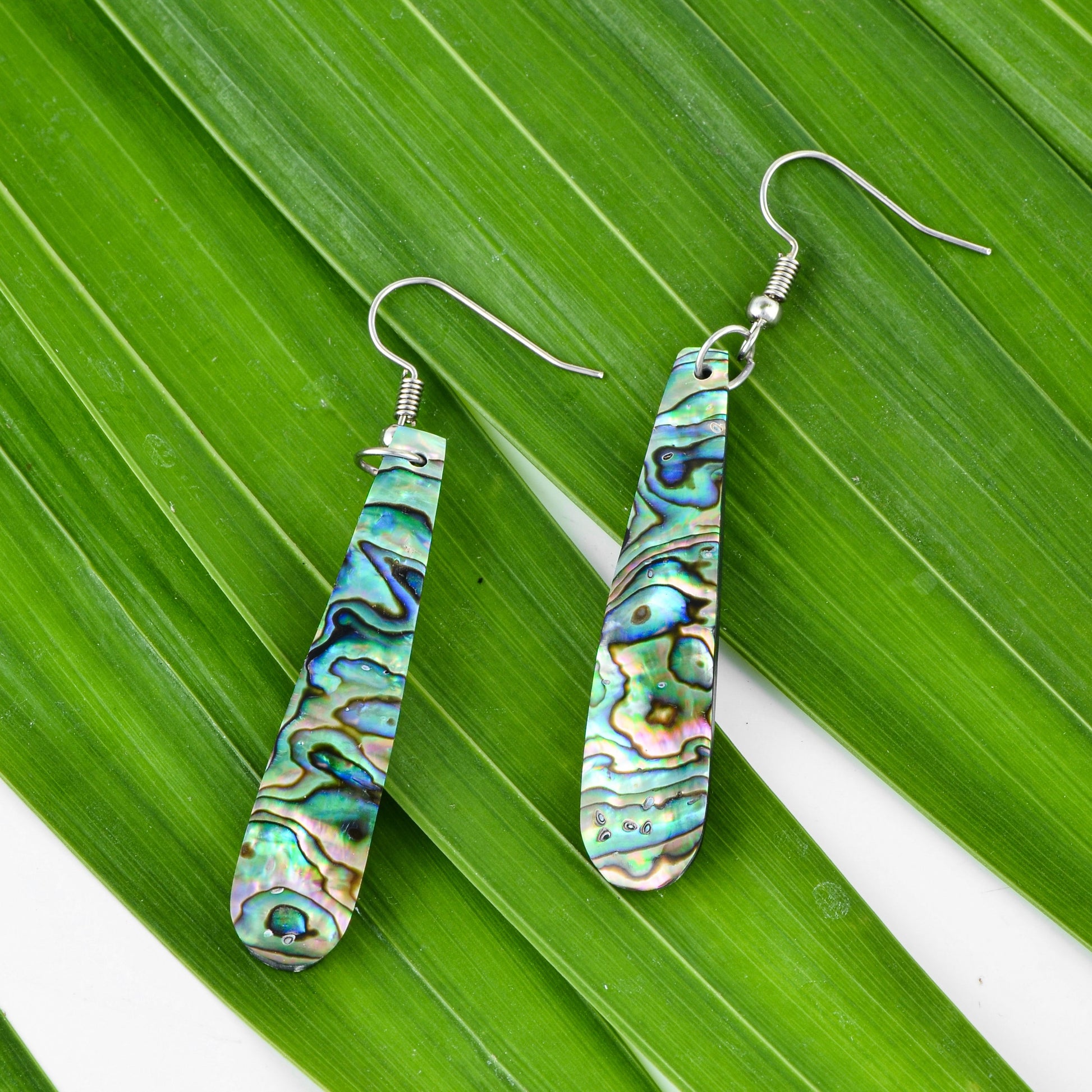 Introducing our beautifully crafted handmade long drop paua abalone earrings, perfect for adding a touch of elegance and style to any outfit. Each earring is cut to size, ensuring a perfect fit for any earlobe. The paua abalone shell is the centerpiece of these stunning earrings, showcasing the natural iridescence and beauty of this unique material.